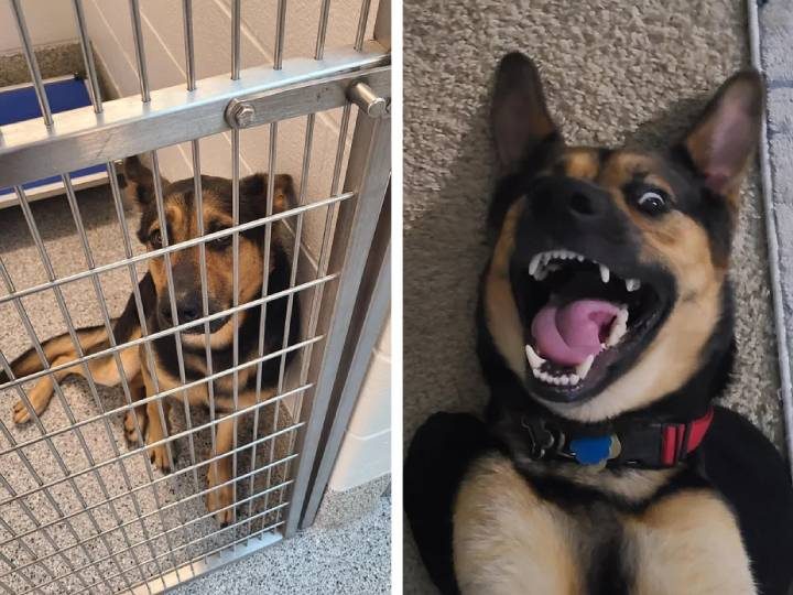 4. “Наш пес «до» и «после» того, как мы забрали его из приюта. Даже не верится, что это одна и та же собака.”