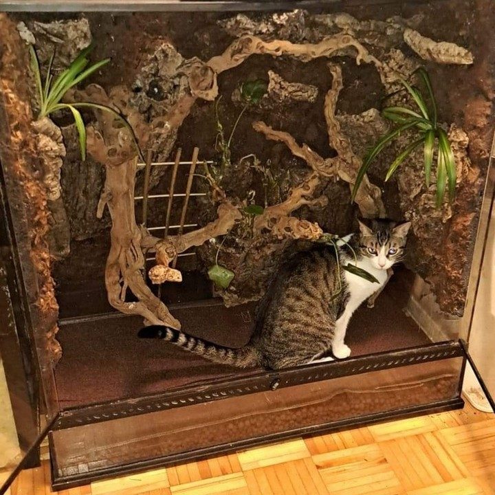 3. Кот представил себя ящерицей и решил немного пожить в террариуме