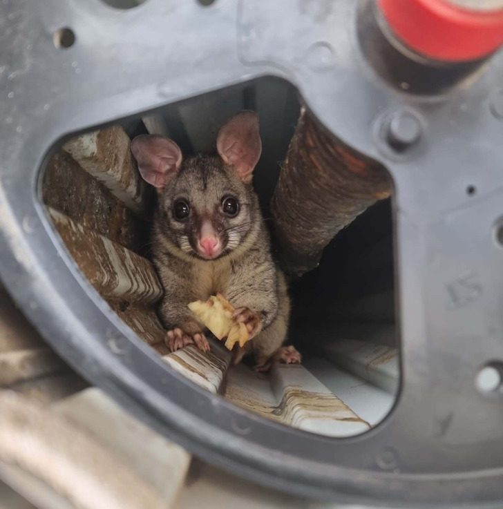 «Вчера поссум испугался фейерверков и спрятался внутри ворот гаража. А сегодня я заметил, что там притаился и второй. Подкормил их яблоком, теперь попробую их вытащить оттуда»