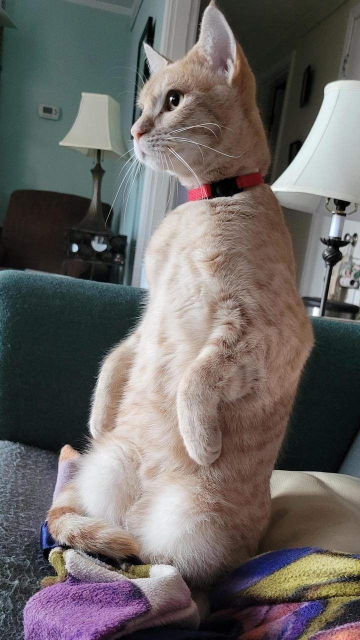 13. “Вот такую странную позу принимает мой кот каждый раз, когда рядом кто-то чихает”