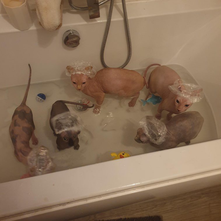 2. “Сегодня у всего моего семейства сфинксов банный день”