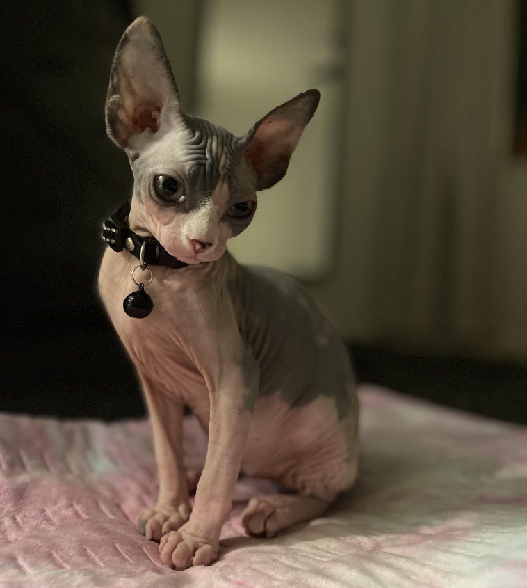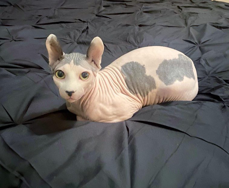 12. “У нашего сфинкса довольно необычный окрас с темными пятнами на голове и на спине”