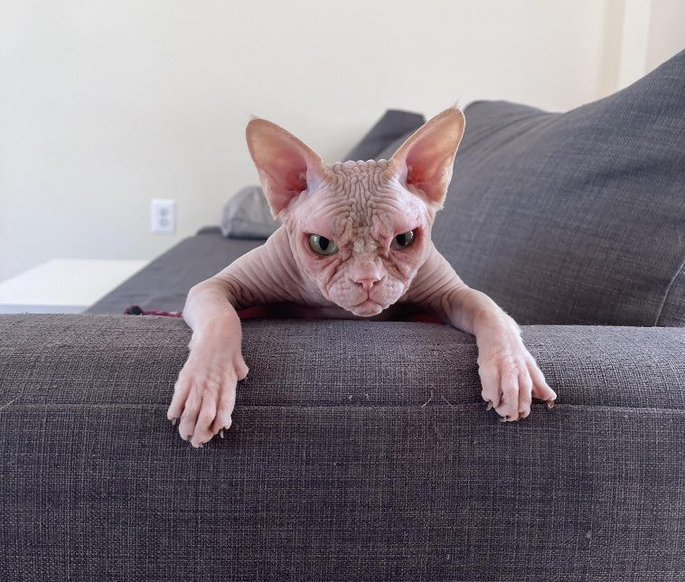 8. Говорят, что сфинксы — очень дружелюбные котики, но, наверное, этот надменный господин — исключение из правила