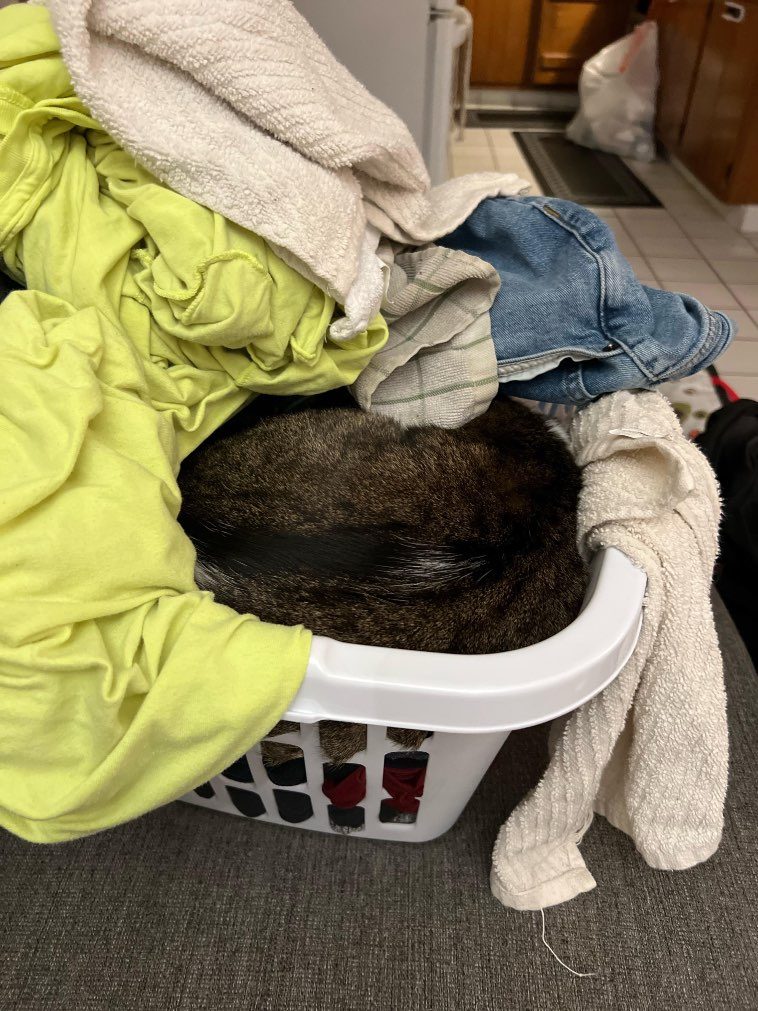 6. “Заснуть в корзине с постиранными вещами — это у нее любимое занятие”