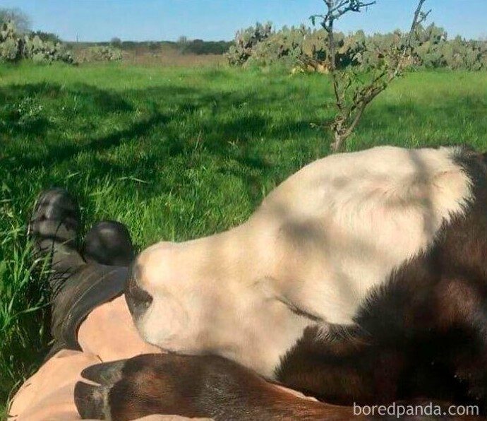 «На мне просто заснула корова, и теперь я не могу встать, чтобы её не разбудить»