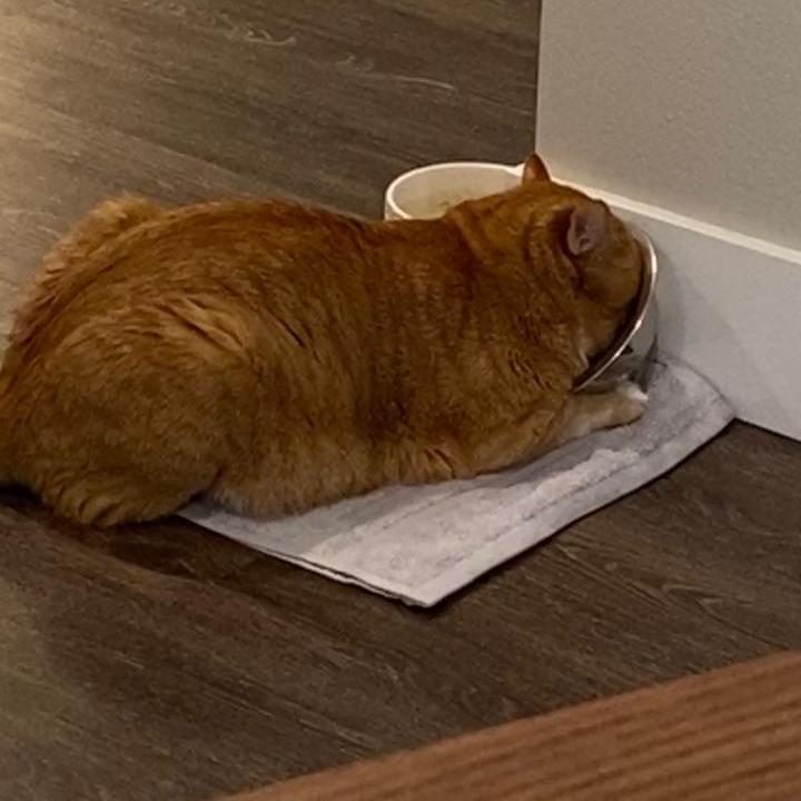 14. “Новый трюк от моего кота — заснуть прямо в миске с водой”
