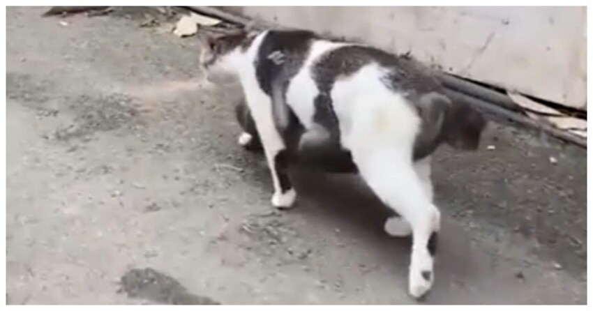 Житель Малайзии запечатлел кошку, переносившую обезьяну. Детеныш потерял своих родителей и хищница решила его усыновить.