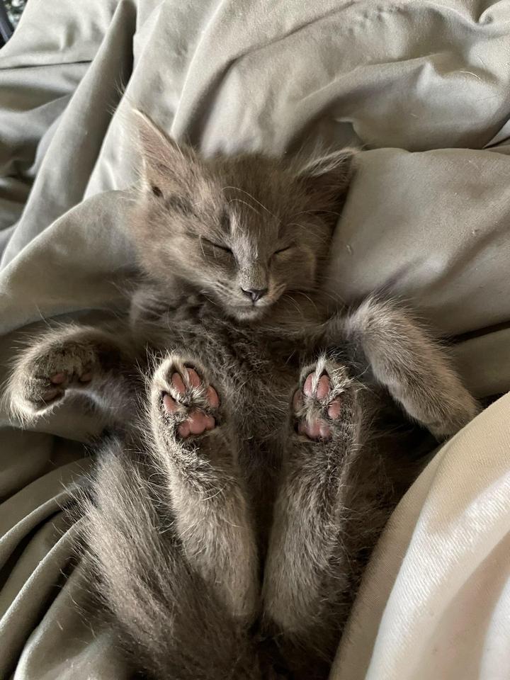 1. Пока котенок крепко спит, мы можем полюбоваться его мягкими лапками с розовыми подушечками