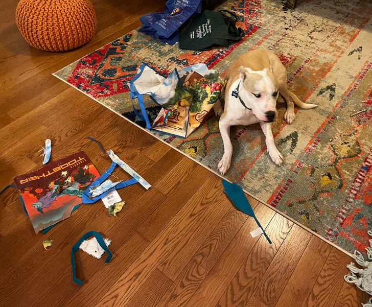 2. «Ушла на 5 минут, чтобы выгулять собаку. Вернулась и увидела это. А ко мне через полчаса придут гости!»