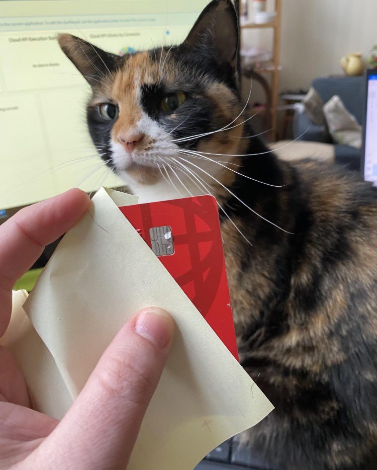 5. “Эта пушистая бандитка проделала дырку в чипе на моей кредитке, и, кажется, ее совсем не мучает совесть по этому поводу”