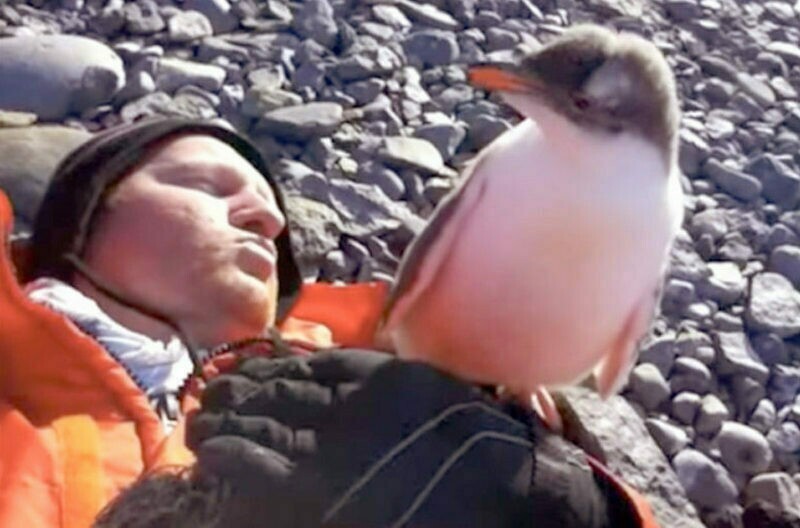 Правда, чтобы встреча прошла максимально благополучно, есть особые рекомендации: к примеру, человек должен стать меньше, нагнуться или присесть. Герой нашего ролика решил стать максимально маленьким и лег прямо на снег. Как отреагировал маленький пигвиненок, смотрите в видео ниже.