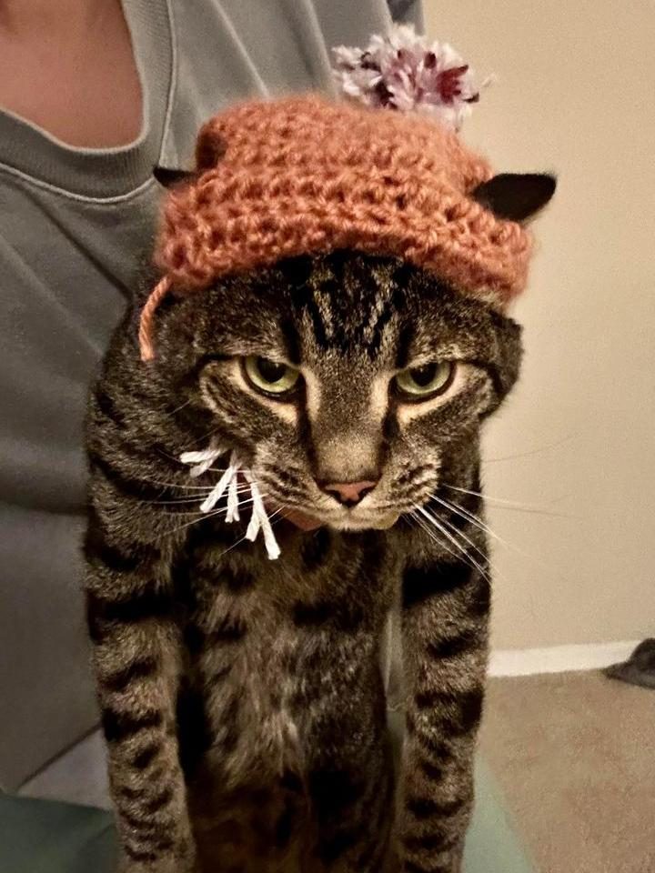 4. “Я связала своему коту милую шапочку, но, похоже, она ему не очень нравится”