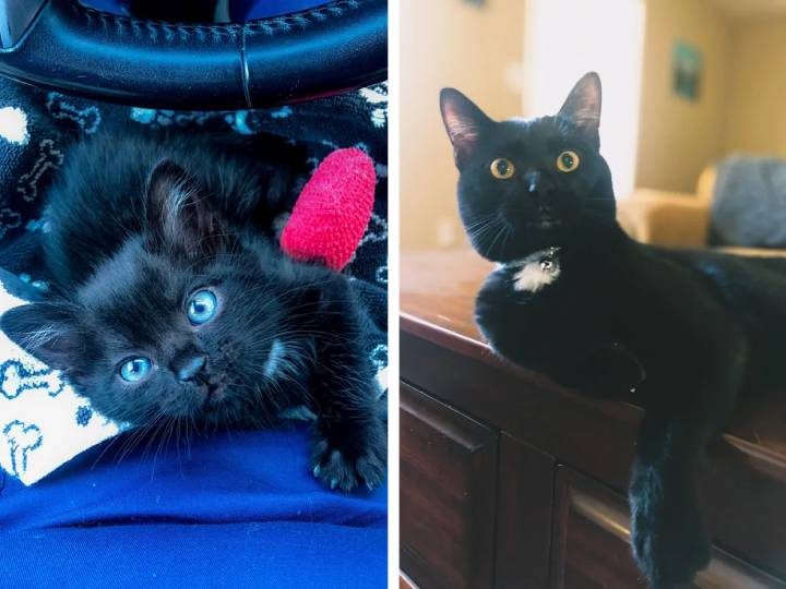 9. “Я работаю в отделении скорой помощи, и однажды к нам пришел черный котенок с переломанной лапкой. Он растопил мое сердце, и в результате уже почти 3 года живет у меня дома.”