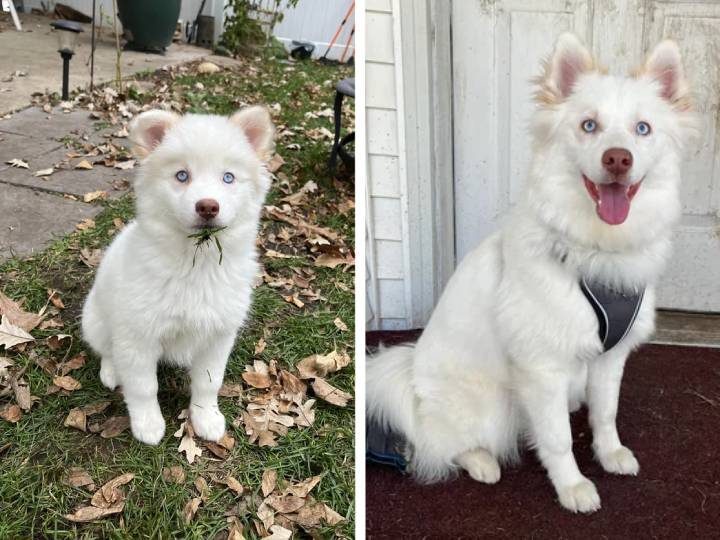 6. Разница между этими снимками всего 7 месяцев, но повзрослевшую собачку просто не узнать