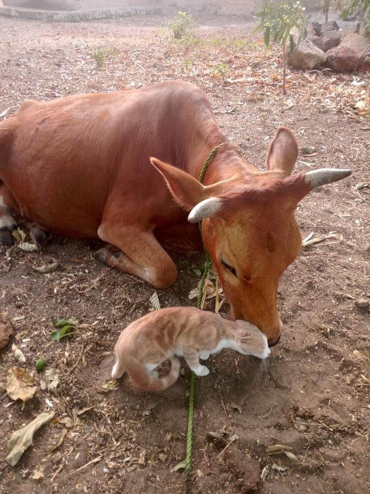 15. Кот решил поближе познакомиться с теленком, и последний, кажется, совсем не против