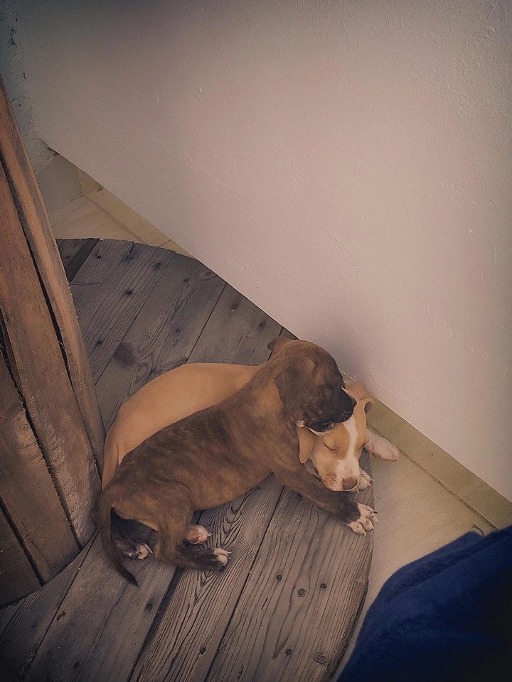 10. “Мы приютили двух щенков, которых нашли на улице. Они сразу же подружились и не отходят друг от друга ни на шаг.”