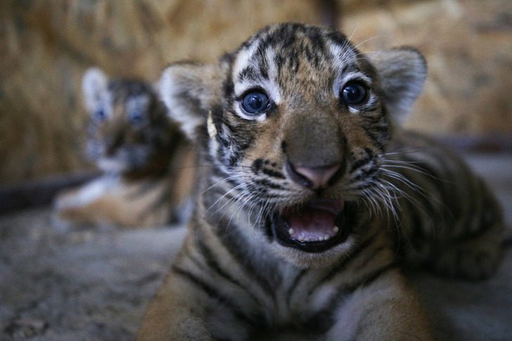 Новорожденные бенгальские тигрята познают мир