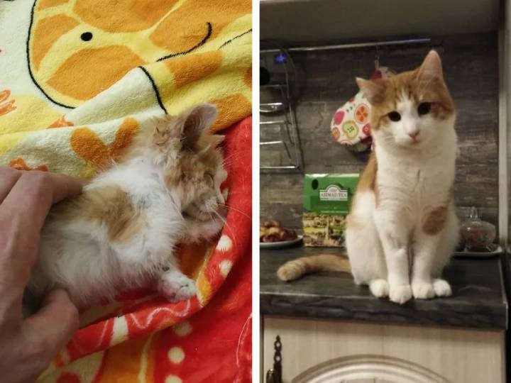11. “Котенок, которого я нашла на улице в 2021 году, был в очень плохом состоянии. К счастью, мне удалось ему помочь и найти для него любящих хозяев. И судя по фото, коту у них дома живется весьма неплохо.”