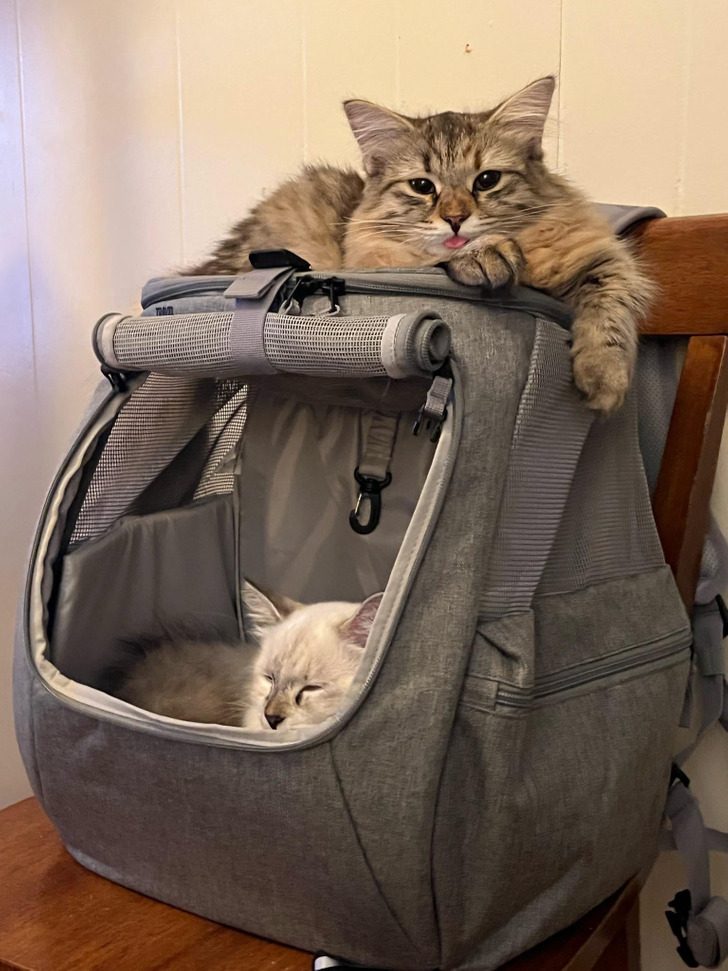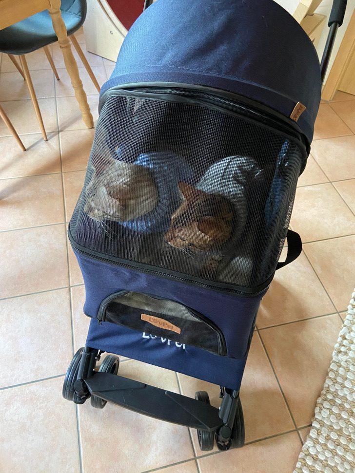«Моя девушка купила специальную коляску, чтобы выгулять своего слепого кота и его братца»