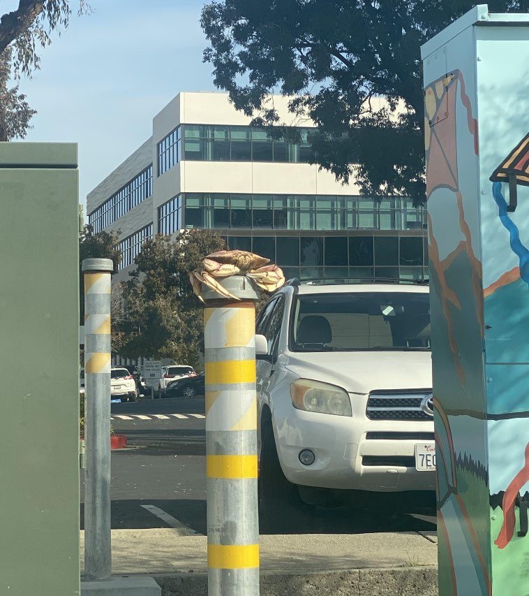 Краб гордо восседает на столбике возле здания Верховного суда в городе Контра-Коста в Калифорнии