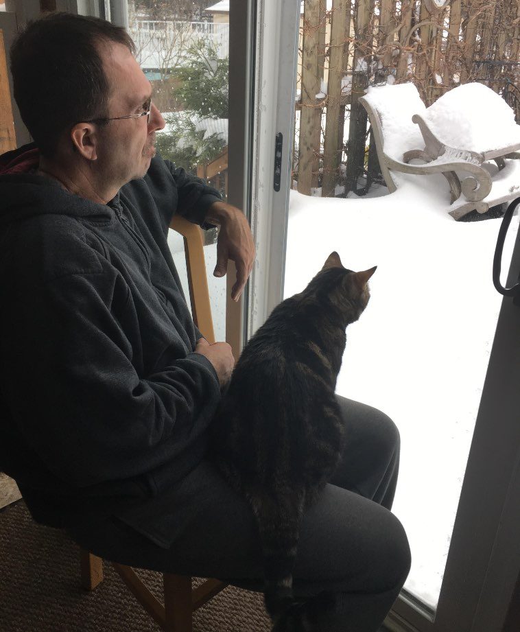 “Мой папа, который раньше уверял, что терпеть не может котов, в компании нашего пушистика любуется тем, как на улице идет снег”