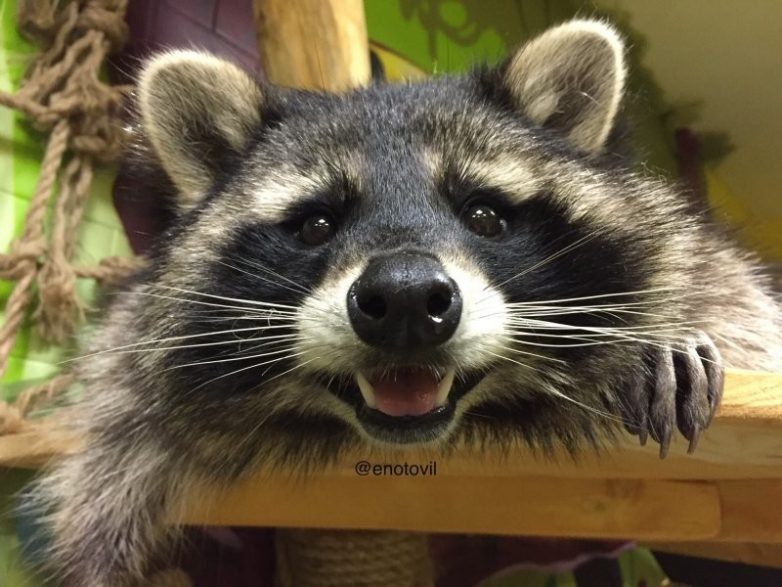 У енотов — «пальцы пианиста». Эти тонкие пальчики очень ловкие — они могут легко проникать куда угодно. Поэтому енот может и дверь открыть, повернув ручку, и в закрытый мусорный влезть.