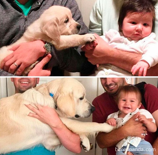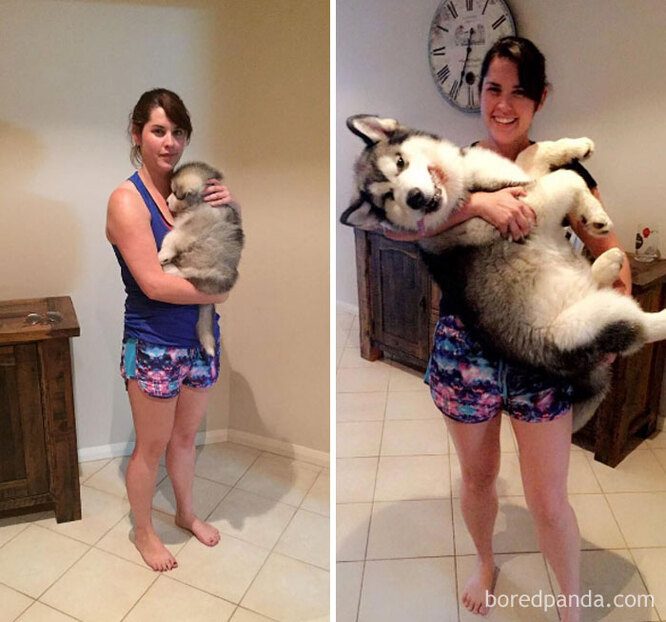 В зависимости от породы собаки она может достигнуть своего максимального размера уже через 6-18 месяцев. Эти фотографии – живое подтверждение тому, как быстро проходит жизнь наших четвероногих друзей. Давайте беречь и любить их, пока они все еще с нами!