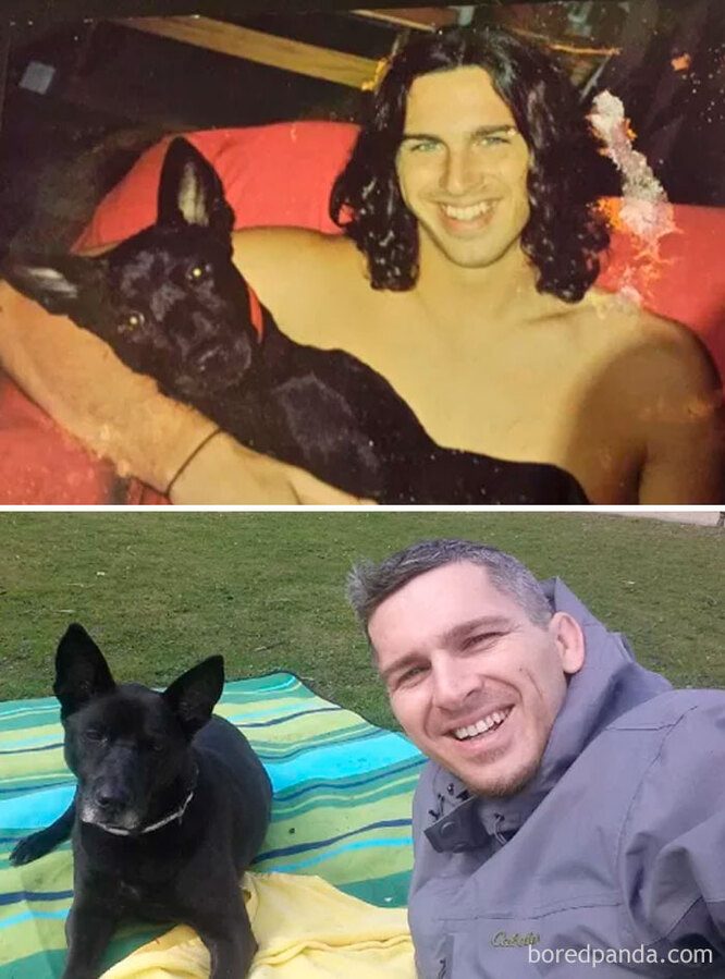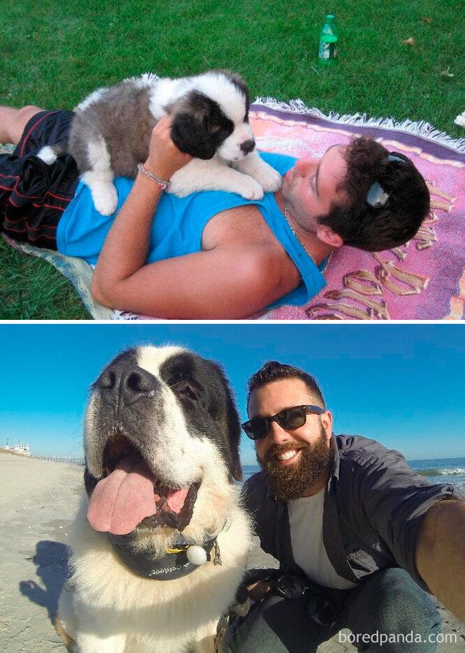 Трогательные фотографии собак и их хозяев в начале дружбы и через много лет
