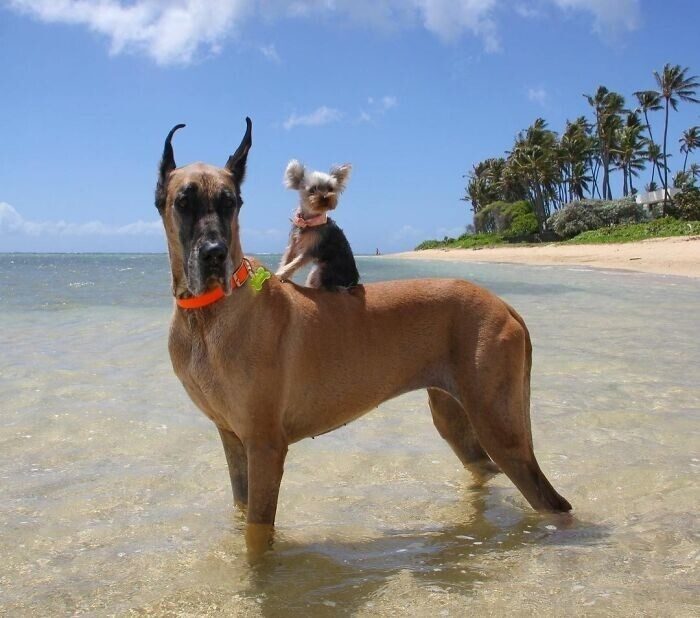 Немецкие доги — настоящие гиганты среди собак. Их рост в холке может составлять до 90 см, а вес — 90 кг. Но несмотря на размеры, они — нежные и весёлые добряки, которые искренне преданы хозяевам. Поэтому за их поведением крайне интересно наблюдать! Посмотрим на забавные и милейшие кадры с представителями этой породы.