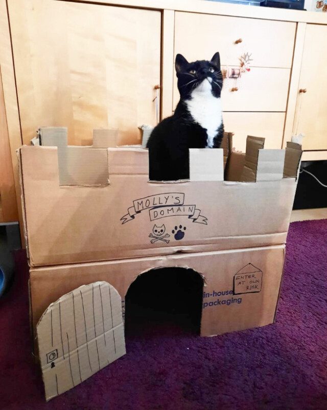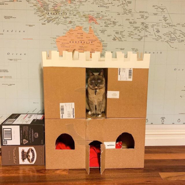 Лучший способ сделать так, чтобы кошки, обожающие картонные коробки, жили, наконец, в кошачьих замках, — смастерить эти замки из картона!