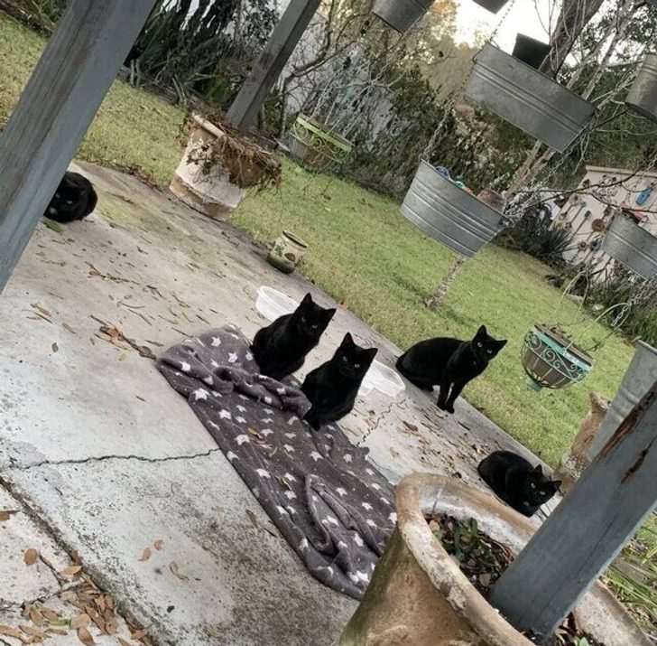 «Мы обнаружили семью из 6 кошек, которые решили, что наш задний двор — это их дом»