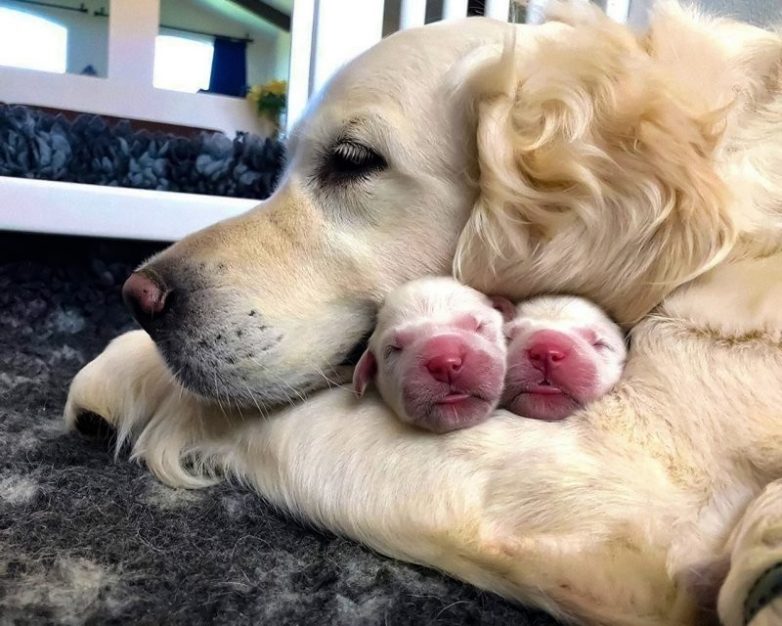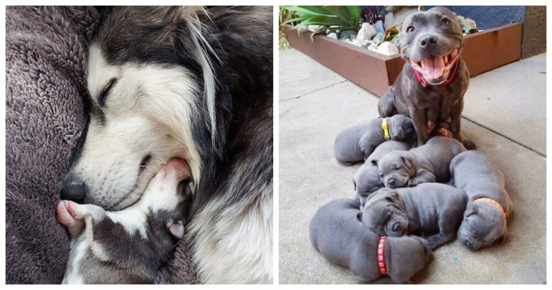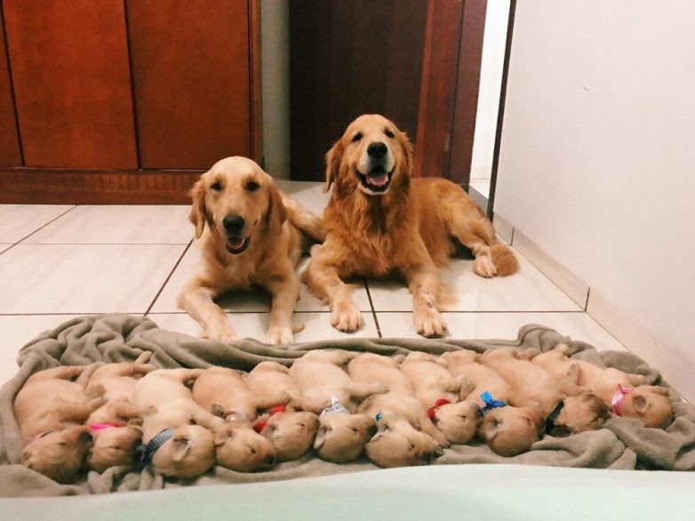 Гордые собаки, демонстрирующие своих отпрысков