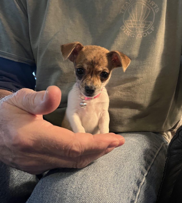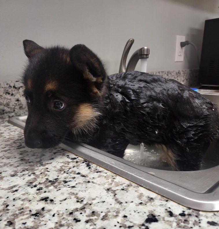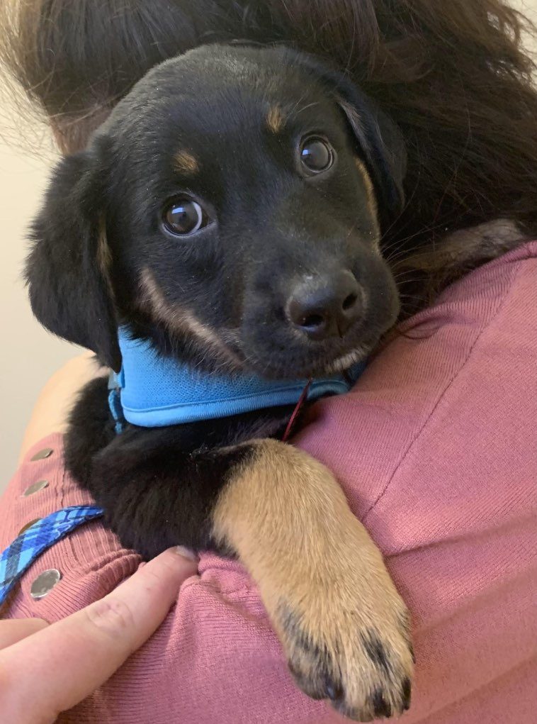 “Эту милую крошку мы вчера забрали из приюта. И, похоже, это самый очаровательный щенок в мире.”