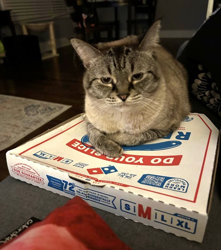«Когда пицца доставляется вам в идеальном состоянии, вы всегда можете положиться на кошек, чтобы это исправить»