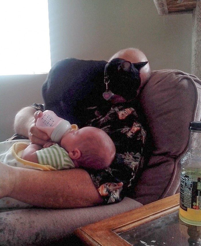 6. Когда в семье появляется ребёнок, пушистики всегда требуют больше внимания