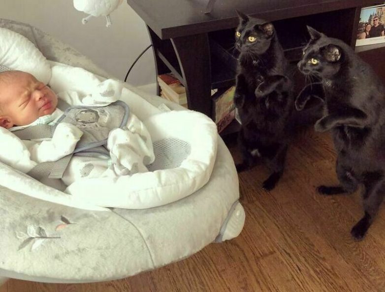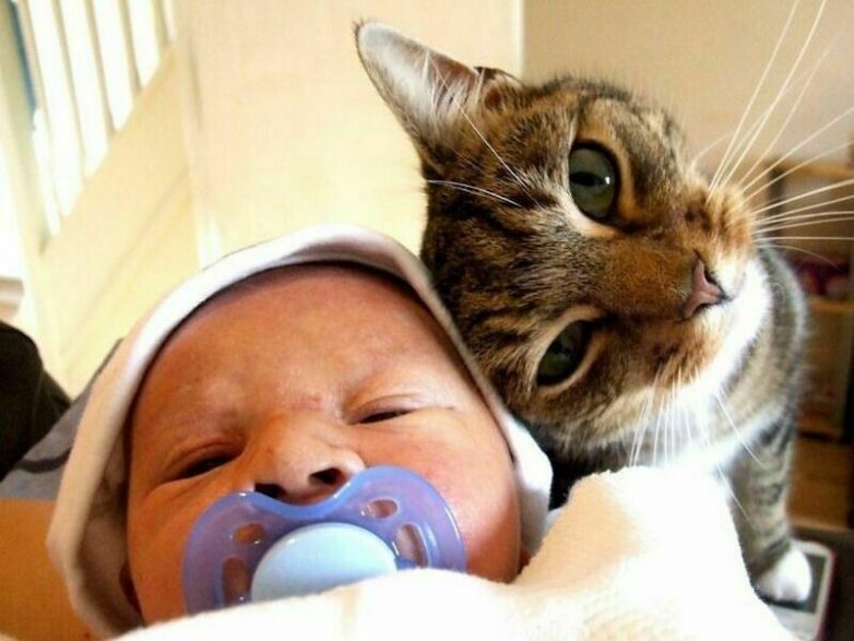 Кота долго не подпускали к ребенку, но оказалось, что все опасения напрасны