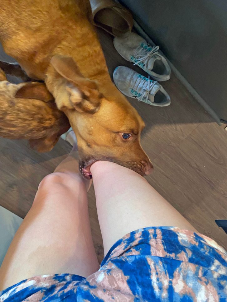 1. Этот песик нежно берет в рот колено человека, которого рад видеть