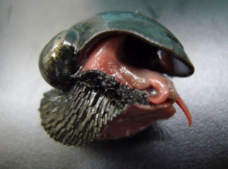 Перед вами единственный многоклеточный организм на Земле, включивший в состав своего скелета соединения железа. Моллюск имеет сверхпрочную раковину, а его нога покрыта множеством минерализованных чешуек повышенной плотности.