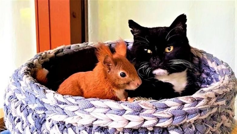 В Дании кошка удочерила белку. Однажды Декан Андерсен пошел гулять в сад. Он увидел белку, выпавшую из дерева. Малыш сильно ударился, когда падал. Думал, что мать спустится за ним, но чуда не произошло.