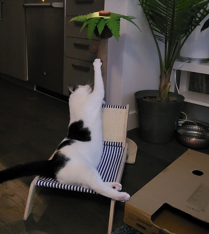 «Мы не выпускаем наших кошек на улицу, поэтому я решил поставить им большую клетку, в пределах которой они смогут гулять. Сегодня мы установили им дерево, и они это оценили»