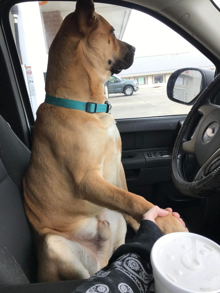 Пока он ждет своего хозяина, предпочитает держаться за руки