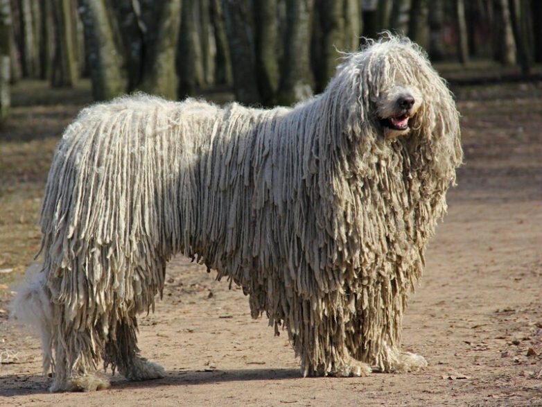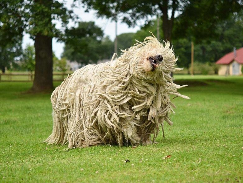 Явный лидер по этой характеристике – чудесная собака породы комондор. Она же венгерская овчарка. По мере взросления мягкие кудряшки щенка самостоятельно завиваются в своего рода шнурки-дреды, с которыми взрослый пёс живёт до конца жизни.