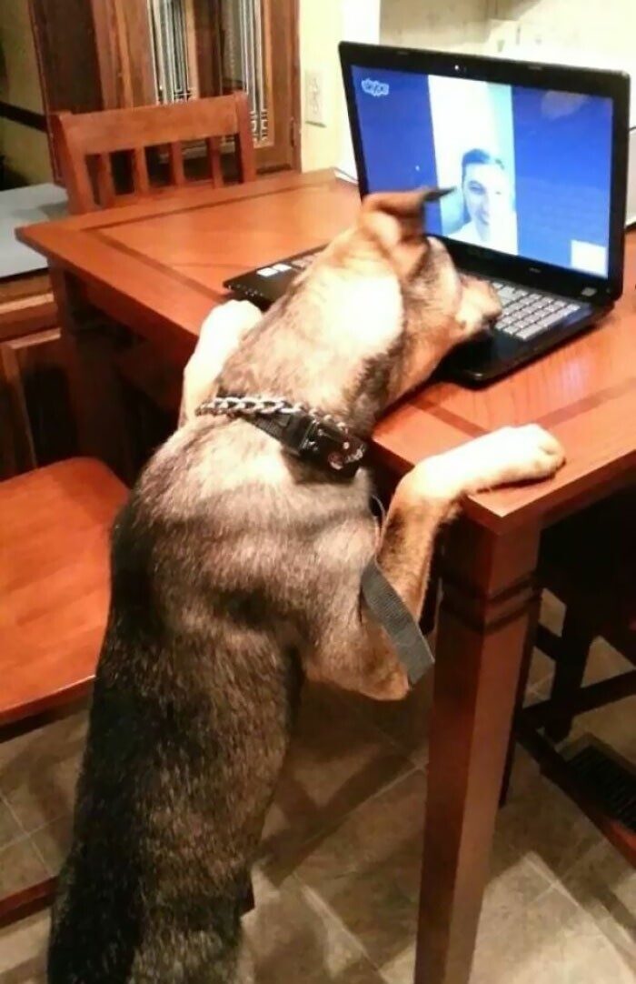 27. Милая реакция собаки, которая услышала своего хозяина в Скайпе