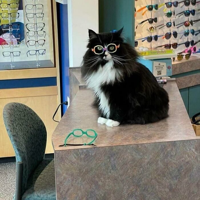 13. Этот кот — «сотрудник» оптики для детей