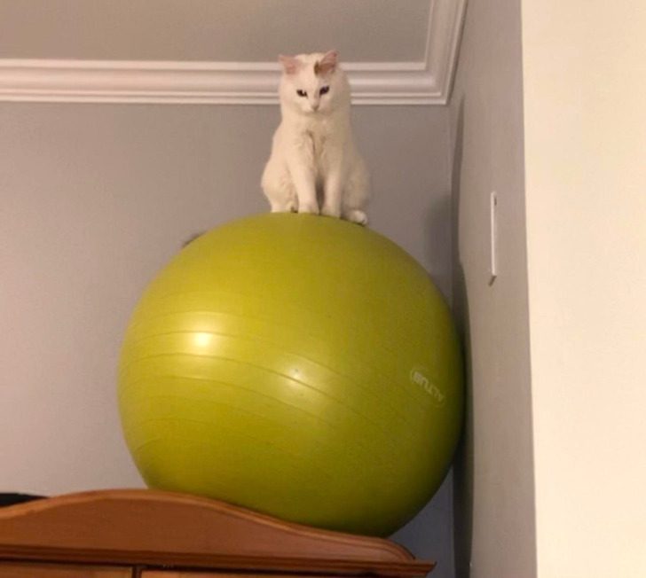 «Мяч для йоги находился на вершине двухметрового шкафа. В конце концов от когтей Дейзи он начал сдуваться, и мы его выкинули. Кошка была расстроена»
