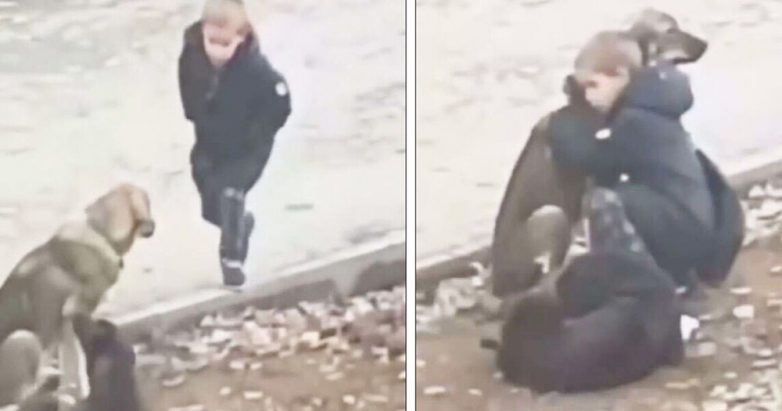 Короткий видеоролик — свидетельство любви мальчика ко всем собакам. На кадрах ребенок обнимает дворняжек и уходит, а потом, не выдержав, возвращается и еще раз прижимает к себе четвероногого.