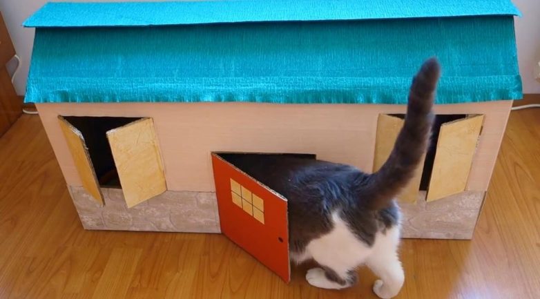 Уютный домик для кота из коробкиУютный домик для кота из коробки