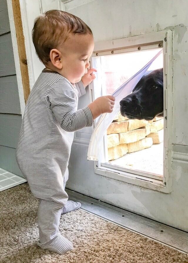 Довольный пес, не очень довольный малыш. Зато ребенок учится искусству компромиссов
