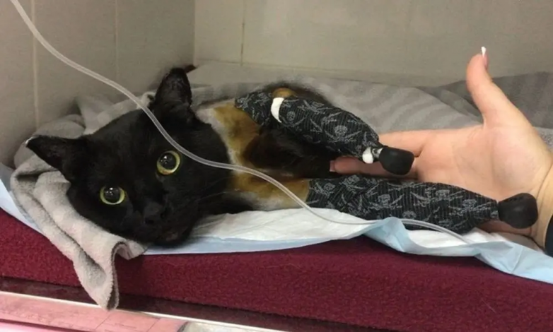 Животное нашли в городе Сухой Лог Свердловской области прошлой зимой. Кот буквально вмерз в лед, ветеринарам пришлось провести ампутацию.