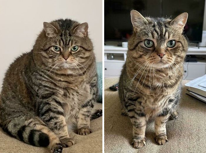 Все любят толстеньких симпатичных котиков, похожих на пушистые облачка, которые так и хочется потискать, окружив любовью. Однако, котейки, наделённые природным очарованием и способностью строить голодные глазки, порой заставляют владельцев перекармливать их, поддаваясь бесконечному мяуканью и променадами вокруг миски. Но как бы то ни было, лишний вес ещё никому не прибавлял здоровья, поэтому все, кто имеет лишние килограммы, в независимости от того, человек это или животное, должны задуматься о том, чтобы их сбросить. И если люди могут взяться за ум сами, то за питомцев это должен сделать их хозяин, как и поступили люди из нашей статьи, поделившись фотографиями своих похудевших котеек.